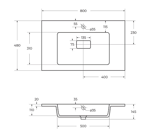 Раковина Cezares Slider CZR-800/480-LV-MR-PRS