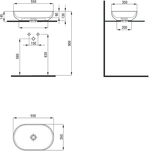 Тип товара Раковина накладная