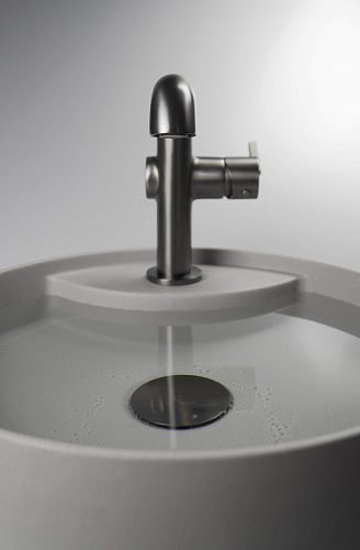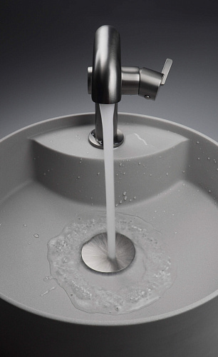 Раковины крепится на столешницу, но отлично смотрится и в сочетании со специальной консолью для ванной из той же коллекции. Только лучшие материалы, качество которых подтверждено лабораторными испытаниями. Свойства гранита Deante: ударопрочность, выносливость на высокую температуру, обесцвечивание, термический удар. Гидрофобные свойства отталкивают молекулы воды. Отделка, обогащенная ионами серебра, придает антисептические свойства. Специальное средство, безопасное для очищаемых поверхностей.