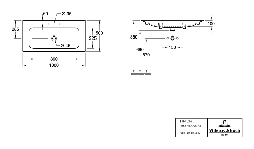 Раковина Villeroy & Boch 4164A2R1 Finion для мебели, альпийский белый CeramicPlus