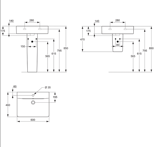 Раковина Ideal Standard E794501 Connect подвесная 60х46 см, с 1-м отверстием под смеситель, Euro White (евробелый)
