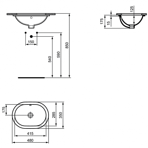 CONNECT Овальная встраиваемая под столешницу раковина, без отверстия под смеситель, с отверстием перелива, с монтажным шаблоном, с крепежом T645567.