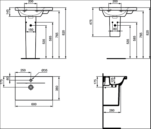 Раковина Ideal Standard E136601 Connect Space подвесная 60х38 см, с 1-м отверстием под смеситель, Euro White (евробелый)