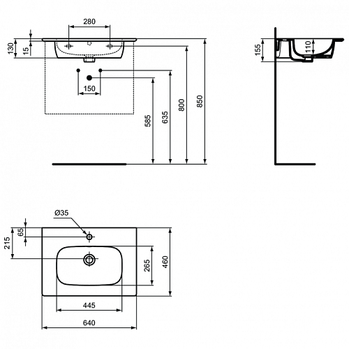 I.LIFE Vanity Раковина с отверстием под смеситель, с отверстием перелива, без крепежа.