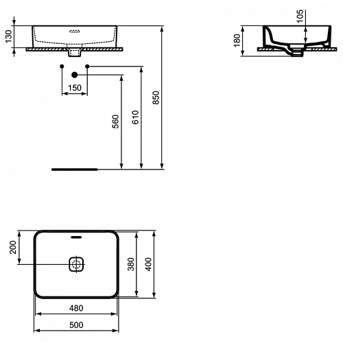 Раковина Ideal Standard T296501 Strada II Vessel накладная 50x40 см, без отверстия под смеситель, Euro White (евробелый)