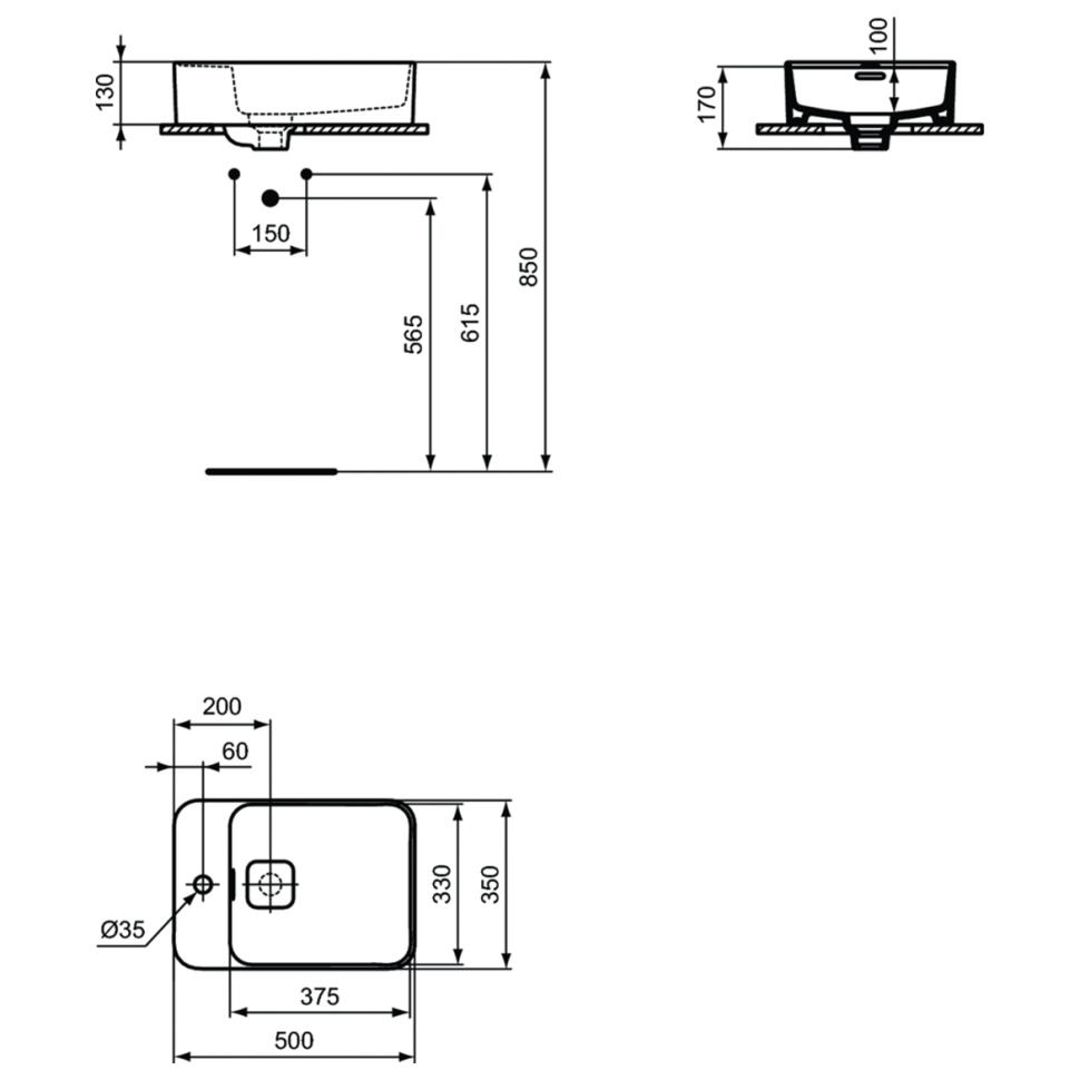 Раковина Ideal Standard T296401 Strada II асимметричная 50х35 см, Euro White (евробелый)
