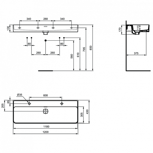 Раковина Ideal Standard T359501 Strada II подвесная 120х43 см, Euro White (евробелый)