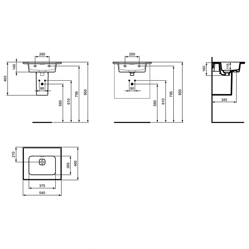 Раковина Ideal Standard T363201 Strada II Vanity подвесная 55х46 см, без отверстия под смеситель, Euro White (евробелый)