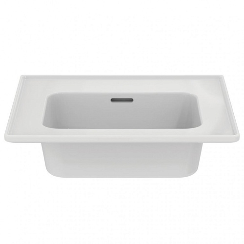 STRADA II Vanity Раковина без отверстия под смеситель (для комбинации с настенным смесителем), для монтажа с мебелью, полуколонной или дизайн-сифоном, с отверстием перелива (щелевого типа), с керамической накладкой слива (T854601). Без крепежа.