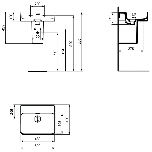 Раковина Ideal Standard T363701 Strada II подвесная 50х43 см, без отверстия под смеситель, Euro White (евробелый)