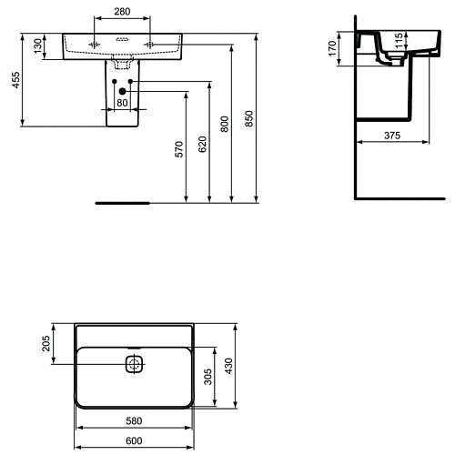 Раковина Ideal Standard T363801 Strada II подвесная 60х43 см, без отверстия под смеситель, Euro White (евробелый)