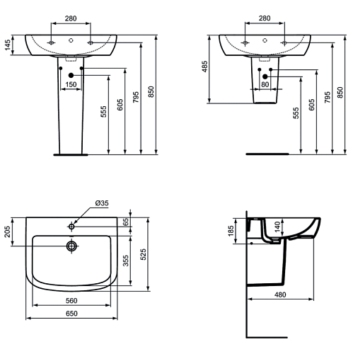 Раковина Ideal Standard T056301 Tempo подвесная 65х50 см, с 1-м отверстием под смеситель, Euro White (евробелый)