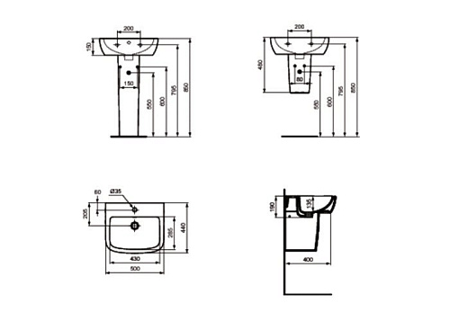 Раковина Ideal Standard T056601 Tempo подвесная 50х44 см, с 1-м отверстием под смеситель, Euro White (евробелый)