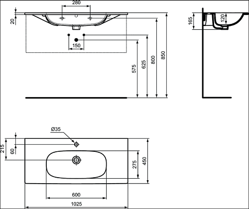 Раковина Ideal Standard T350801 Tesi Vanity накладная-соло 100х45 см, Euro White (евробелый)