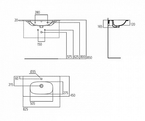 TESI Vanity Умывальник 80 см для монтажа соло с дизайн-сифоном или с подстольем TESI 80 см, с отверстием под смеситель, с отверстием перелива. Без крепежа, рекомендуемый крепеж K710767