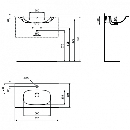 Раковина Ideal Standard T3509V1 Tesi Vanity подвесная 80х45 см, для монтажа соло, Silk White (белый матовый)