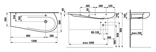 Раковина-столешница Alessi One 120х50 см , полочка слева, с отв. для смесителя, покрытие LCC