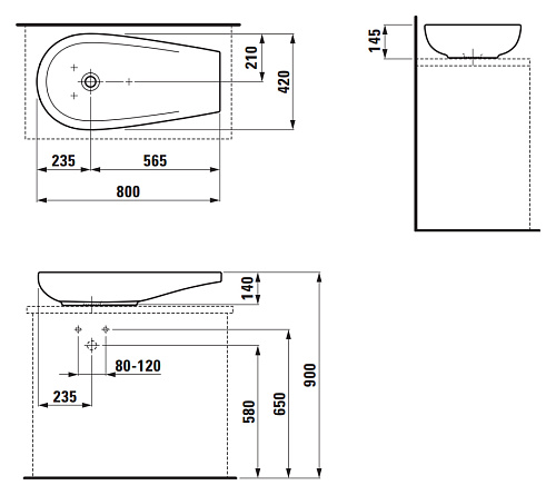 Раковина-чаша Alessi One 80х42 см, ассиметричная, полочка слева или справа, без отв. для смесителя и слива-перелива, покрытие LCC