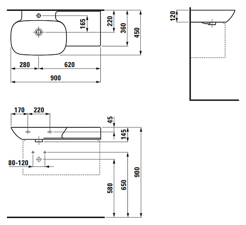 Раковина Laufen 8.1330.2.000.104.1 INO, 90х45 см
