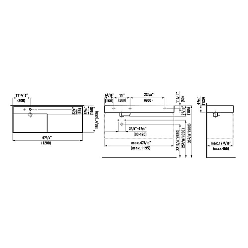 Раковина-столешница 120х46 см Kartell by Laufen, полочка справа, скрытый слив-перелив, 1 отв. для смесителя, цвет белый