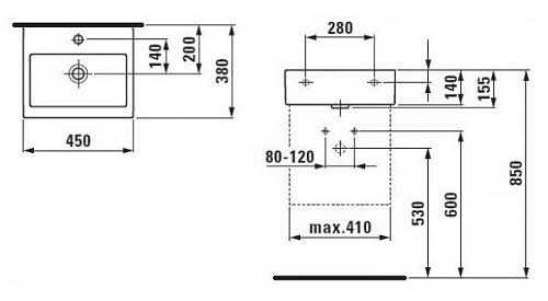 Керамическая подвесная мини-раковина (отшлифована) с отверстием под смеситель в размере 450x380?155 мм, цвет белый. Ясность концепции и четкость форм воплощает в себя Laufen коллекция Living. Эта серия впечатляет сложными геометрическими формами в то же время простота в использовании. Коллекция Living создана для людей живущих в современном мире.Характеристики: материал: керамика размер: 450x380?155,мм способ монтажа: подвесная с переливом с отверстием под смеситель