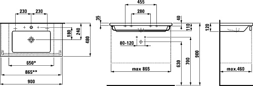 Раковина-столешница Living square 90х48 см, подрезаемая, с отв. для смесителя, цвет белый