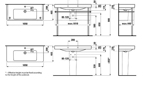 Раковина Laufen 8.1396.6.000.104.1 Pro встраиваемая, 105х46 см
