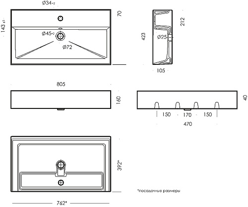 Раковина Sanita Luxe NOV80SLWB01 Novel мебельная 80х42 см, белая купить по доступной цене