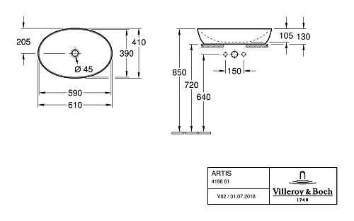 Раковина Villeroy & Boch 419861R2 Artis на столешницу, Star White CeramicPlus (Ярко-белый)