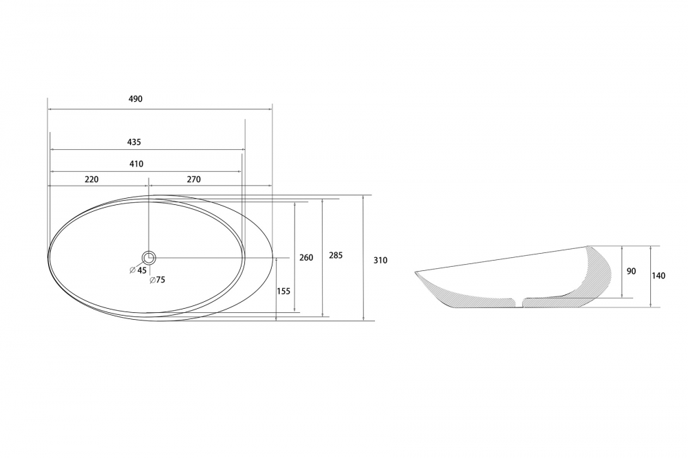 Тип товара Раковина накладная