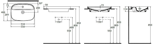 Тип товара Раковина накладная
