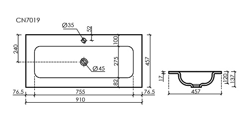 Раковина накладная мебельная CERAMICANOVA Grace прямоугольная 910*457*137 мм, с отверстием под смеситель, цвет белый, CN7019