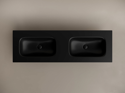 Раковина накладная мебельная CERAMICANOVA Grace прямоугольная 1410x457x137 мм, с двумя чашами без отверстий под смеситель, цвет черный матовый, CN7022MBwx