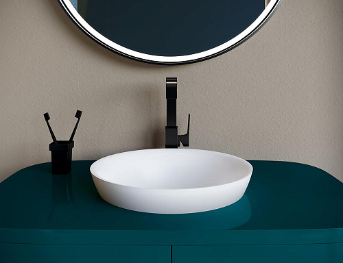 Раковина полувстраиваемая матовая 42x42 см Salini MAREA 1802203M. Раковина MAREA 03 из литого камня от Salini. MAREA 03— компактная овальная раковина из коллекции MAREA. Вдохновленная морем и шумом волн прилива. Так переводится слово «MAREA» c итальянского — «прилив». Выступающие борта раковин, как волны, накатывающие на берег. Предназначена для установки в столешницу, с выступающим бортиком высотой 55 мм. Доступна в любом цвете по палитре RAL. Ванную комнату сложно себе представить без самого главного ее элемента — раковины. С течением времени внешний вид раковин, их форма и конструкция менялись с целью обеспечить большую эстетичность и удобство. Представляем Вам раковину MAREA, стильный экземпляр, востребованная форма и возможность исполнения в любой цветовой гамме. Базовый белый. Возможна окраска в цвет по RAL +50% к стоимости. Возможна окраска с внешней стороны +30% к стоимости.