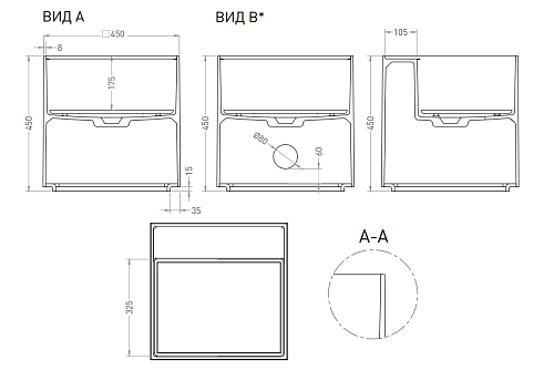 Оснащение Раковина накладная без отверстия под смеситель, декоративная накладка на слив, выпуск для раковины D503