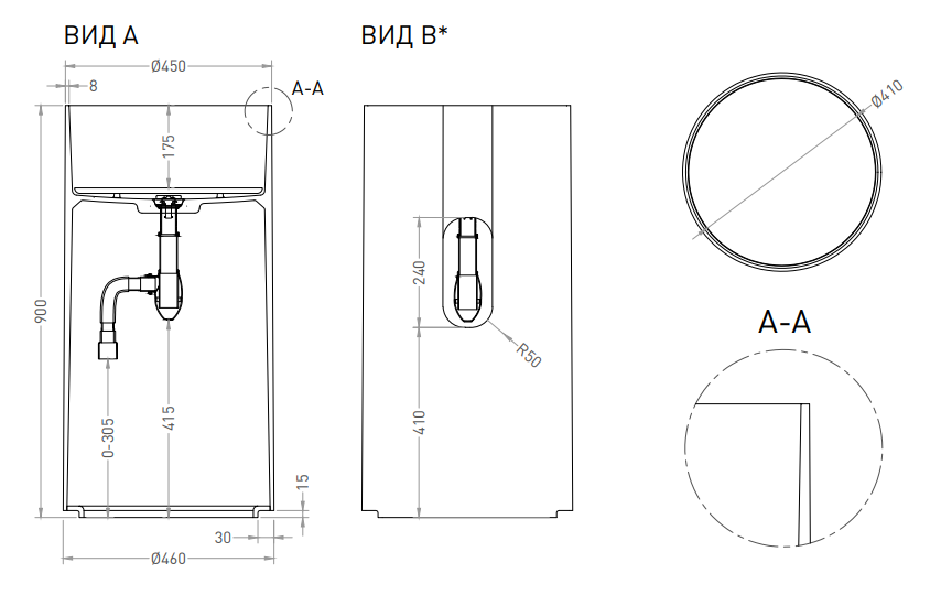 Оснащение Раковина напольная, выпуск для раковины D 503, сифон, декоративная накладка на слив