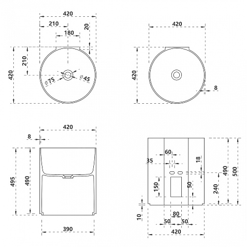 Тип товара Раковина подвесная