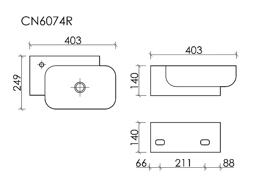 Рукомойник подвесной прямоугольный 403x249x140, с отверстием под смеситель (чаша справа, отверстие под смеситель слева), с системой перелива, цвет белый
