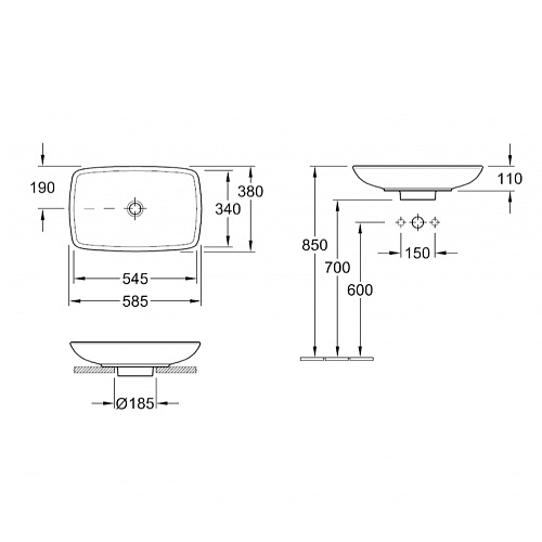 Раковина Loop &, Friends 5154 0001 Villeroy & Boch Характеристики Артикул производителя ,5154 0001 Тип ,накладная Форма ,прямоугольная Стилистика дизайна ,hi-tech Материал ,фарфор Цвет ,белый Кол-во готовых отверстий под смеситель ,0 Перелив ,нет, установка невозможна Крепление ,к столешнице В комплекте ,набор креплений Ширина (см) ,58.5 Глубина (см) ,38 Высота (см) ,11 Страна-производитель ,Германия