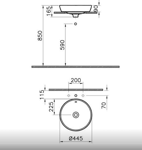Оснащение Раковина, декоративная накладка на перелив, шаблон для вырезки отверстия в столешнице (масштаб 1:1), инструкция.