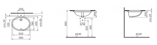 Шаблон для вырезания отверстия в столешнице/крепежи раковины к столешнице в комплекте. Материал раковины фарфор VitrA обладает повышенной ударостойкостью.
