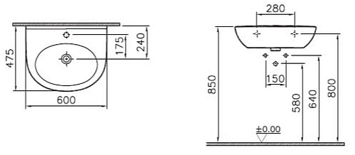 Раковина Vitra 5786B003-0001 Zentrum подвесная 60х48 см, белая