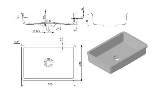 Тип товара Раковина встраиваемая снизу