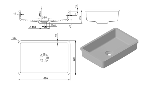 Тип товара Раковина встраиваемая снизу