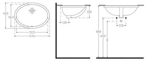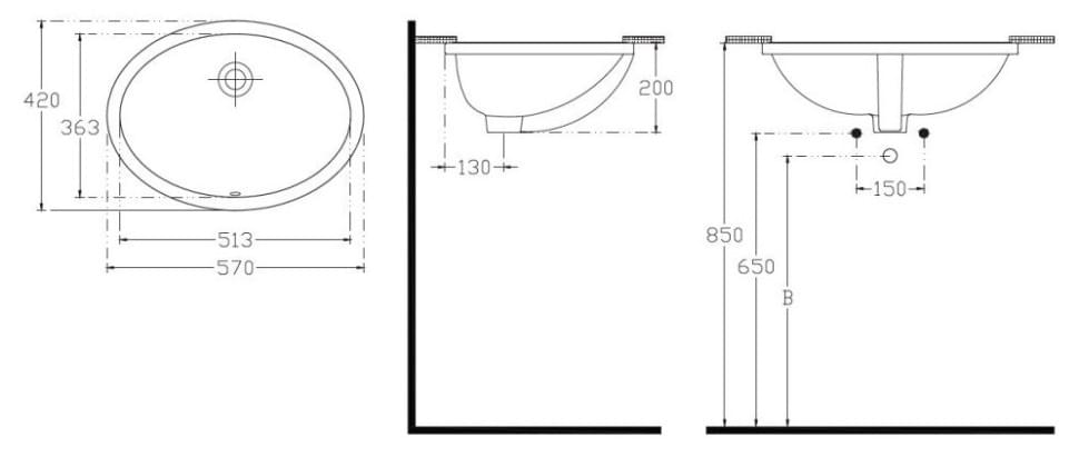 Тип товара Раковина встраиваемая снизу