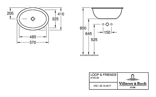 Раковина Villeroy & Boch 615520R1 Loop&Friends встраиваемая, альпийский белый CeramicPlus