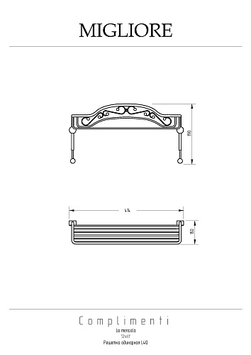 Решетка Migliore 22024 Complementi большая одинарная с двумя крючками, бронза