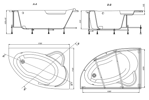 Roca ZRU9302911 ванна ассиметричная LUNA левосторонняя 170х115х48