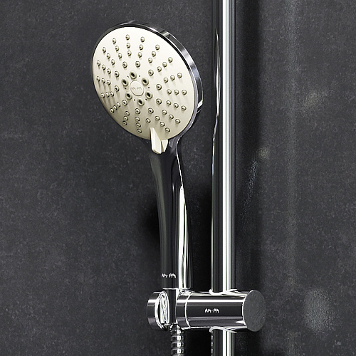 Выверенный геометрический дизайн: идеально ровные поверхности, характерные для премиального сегмента. Уникальный рисунок и диаметр форсунок – дизайн равномерное распределение воды при любом напоре и обеспечивает максимум удовольствия от душа. 3 режима ручного душа: Spray, EnerJet, Spray + Massage с инновационным переключателем режимов Simple Switch Push. Функция Rub&Clean для легкой очистки душевых форсунок.