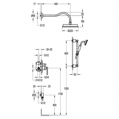 Семейный душ Swedbe 2515 Terracotta Art со смесителем встраиваемый, терракот